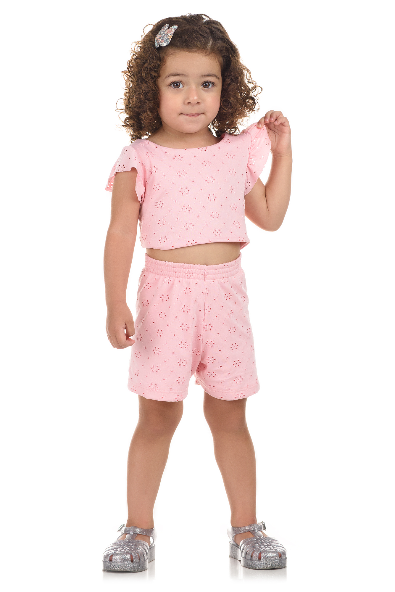 Descrição: O Conjunto Bonequinha é a escolha perfeita para as pequenas que adoram um look adorável e confortável. Com um top estiloso e um short prático, este conjunto é ideal para passeios e brincadeiras, garantindo um visual encantador.