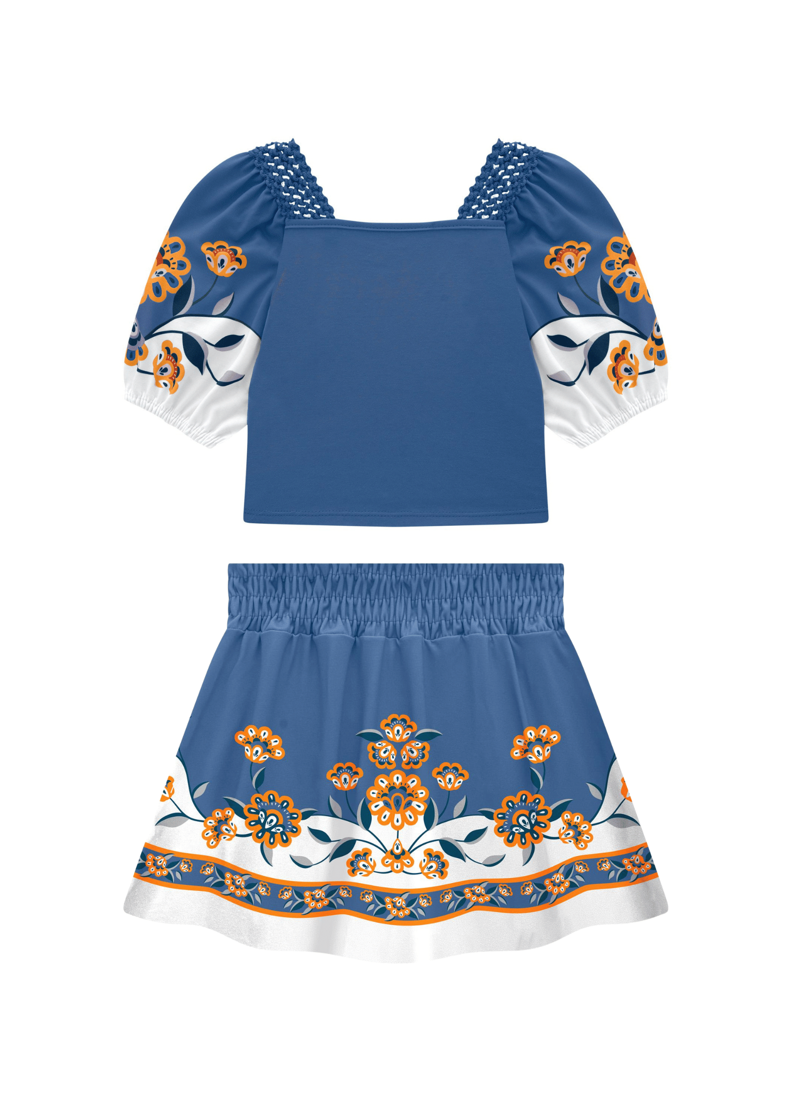 Material: Confeccionada com 95% poliéster e 5% elastano, a blusa oferece um toque suave e um ajuste confortável, permitindo liberdade de movimento enquanto mantém a elegância. O short saia, também feito com 95% poliéster e 5% elastano, proporciona um visual moderno e prático, ideal para brincar e se divertir sem abrir mão do estilo.