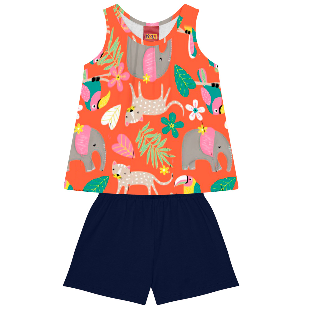 Estilo: Com estampas vibrantes de animais e elementos da selva, este conjunto é ideal para compor looks alegres e divertidos, trazendo a natureza para o guarda-roupa infantil.