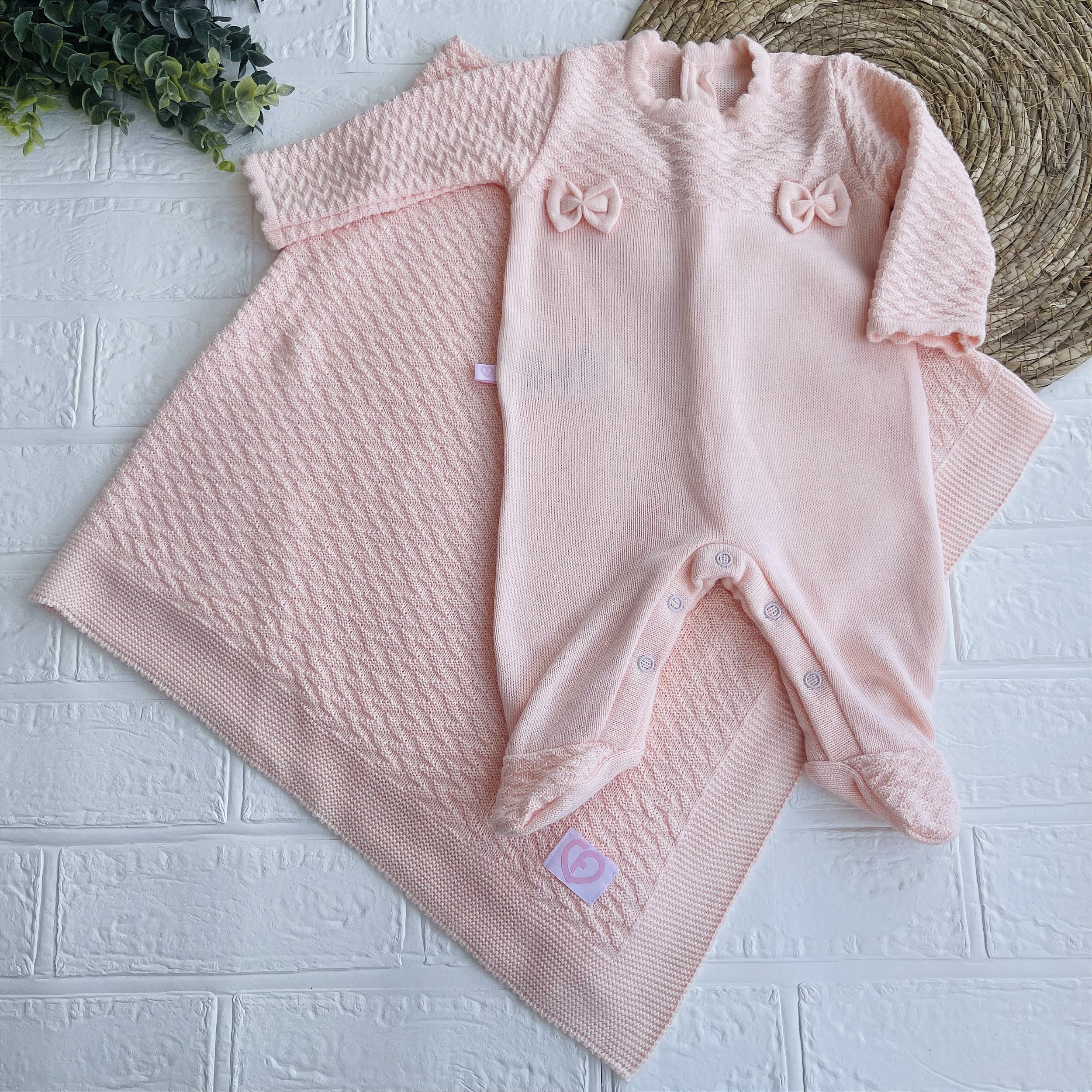 Detalhes: O conjunto em rosa possui um design clássico com laços decorativos, adicionando um toque de elegância e doçura.