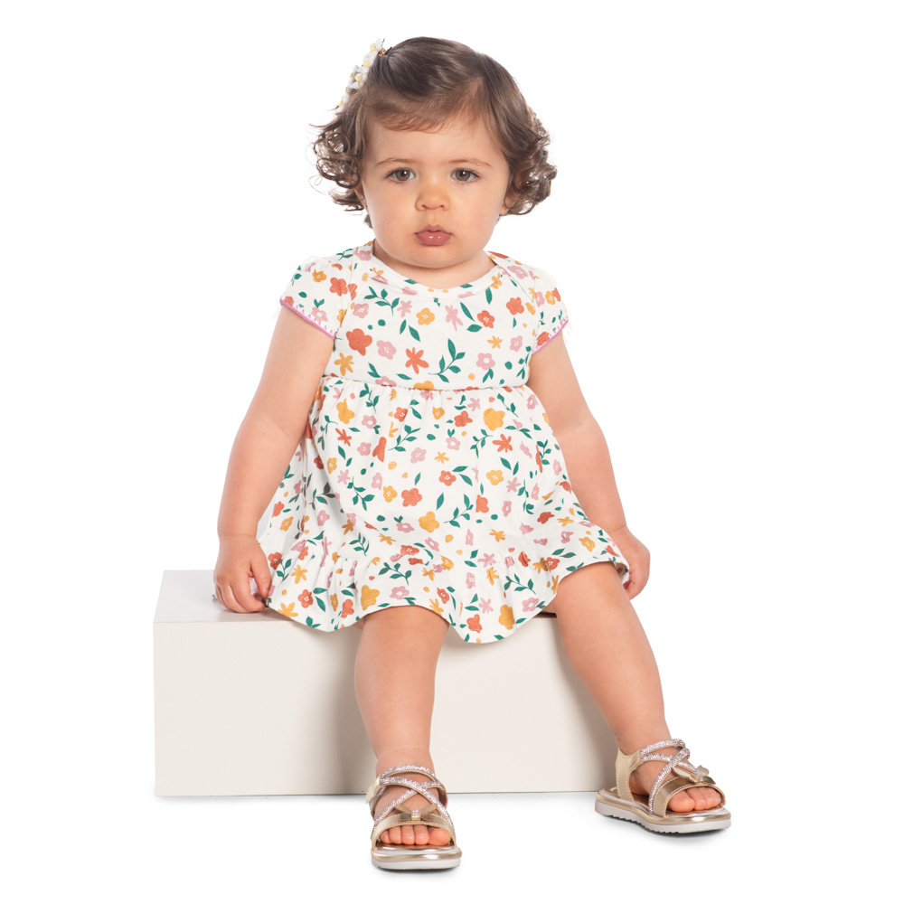 Estilo: Com uma estampa vibrante de flores, este vestido body é ideal para criar looks adoráveis e cheios de vida, refletindo a beleza da natureza e a diversão da infância.
