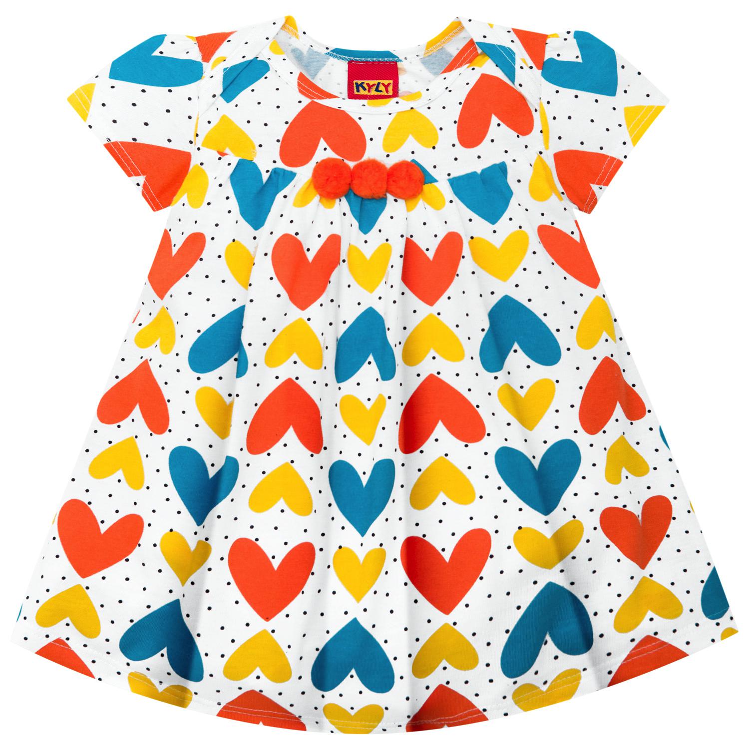 Detalhes: O vestido possui uma estampa vibrante de corações e aplicação de pompom, adicionando um toque lúdico e encantador. É projetado para crianças de 3 a 6 meses, com um body integrado que facilita o uso e troca.