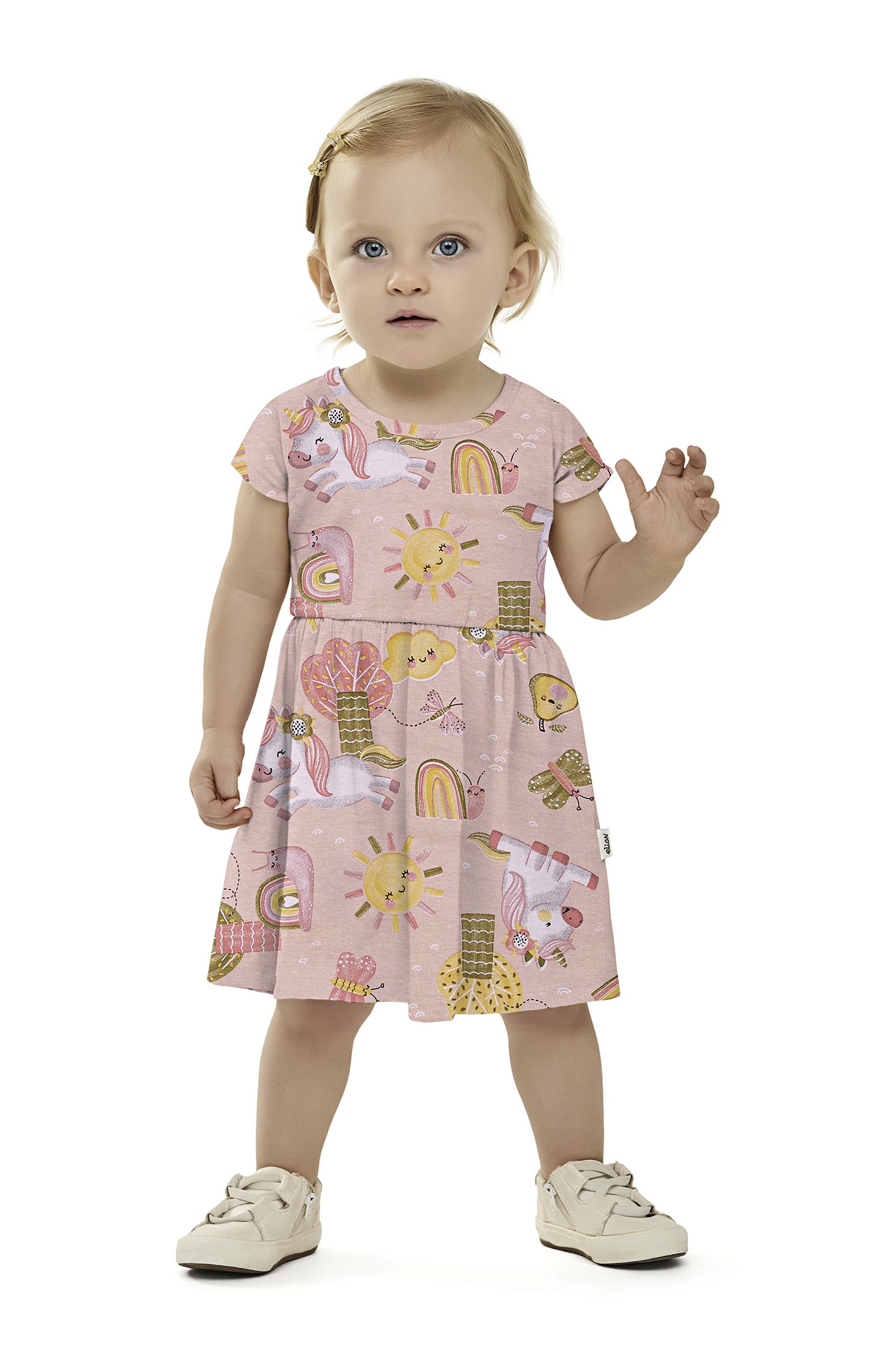 O Vestido Unicórnio é pura magia e fofura, perfeito para encantar em qualquer ocasião. Com estampa colorida e alegre, ele traz o conforto que as pequenas precisam para brincar e se divertir com estilo.